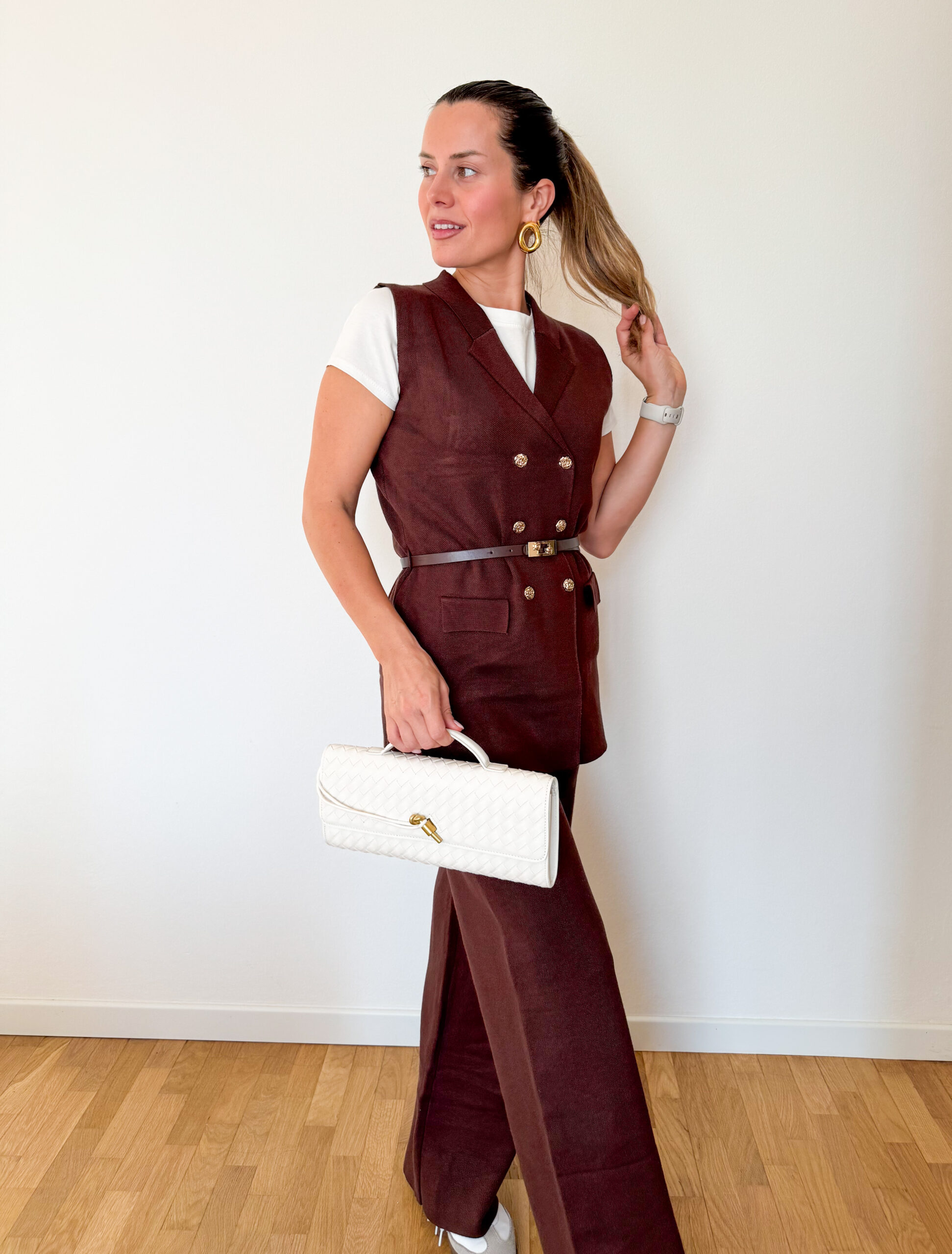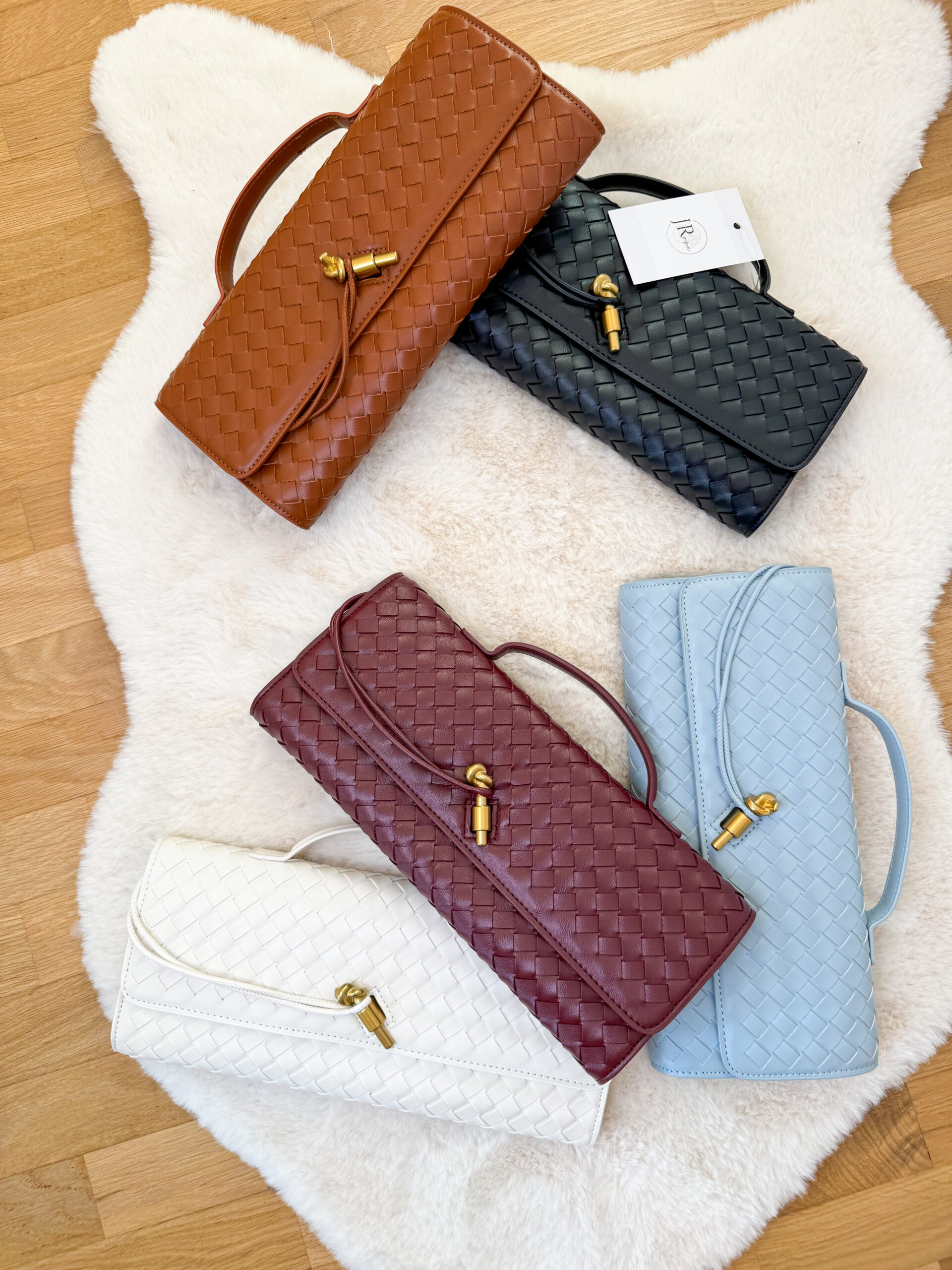 Borsa Amalia in PU intrecciata a mano. Chiusura con gangetto dorato. Tracolla lunga inclusa. Due tasche interne, di cui 1 con zip.