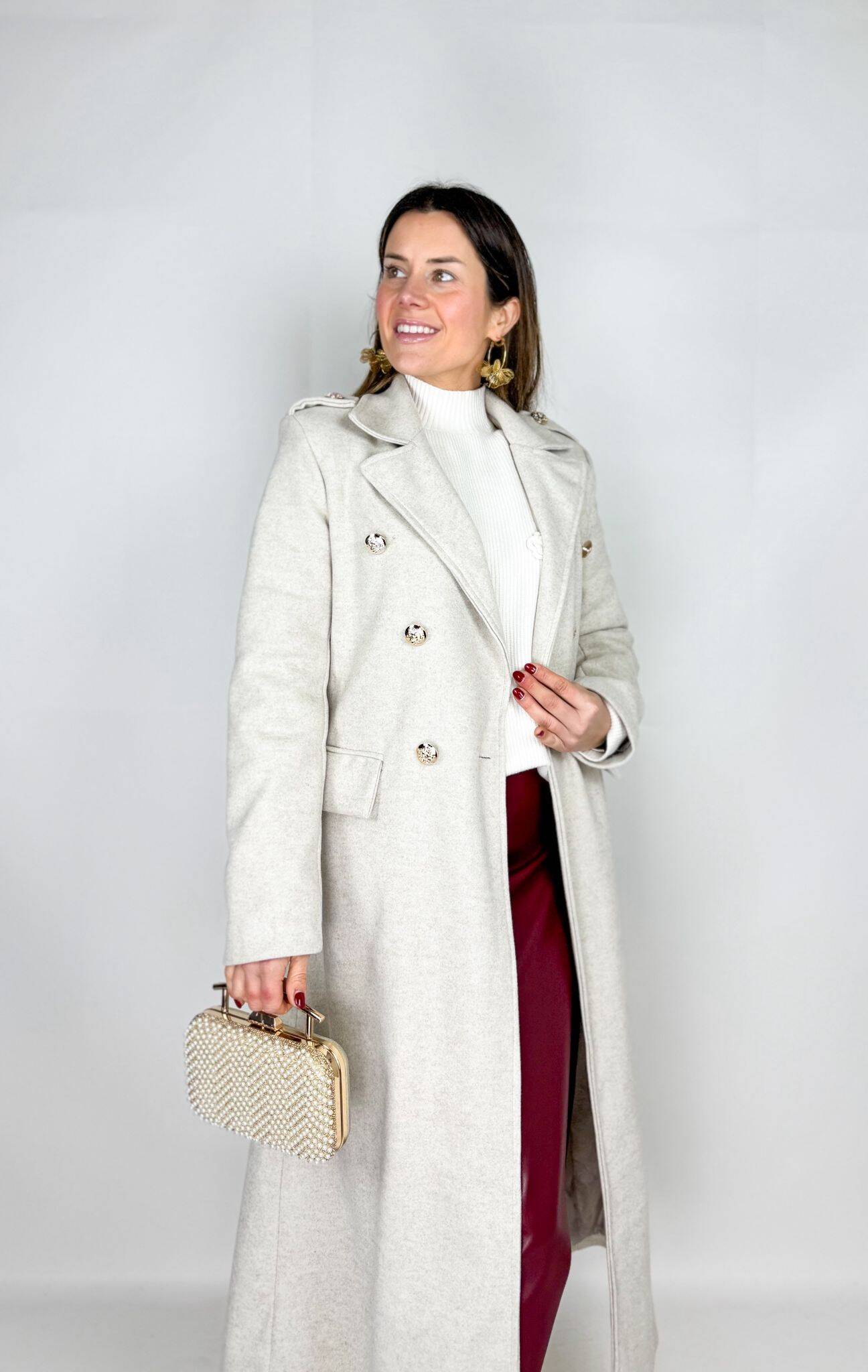 Borsa perla dorata modello bauletto rigido con perline bianche applicate sulla parte davanti. Manichetto rigido a mano o tracolla lunga a catenella.ย Ideale da cerimonia o da serata.