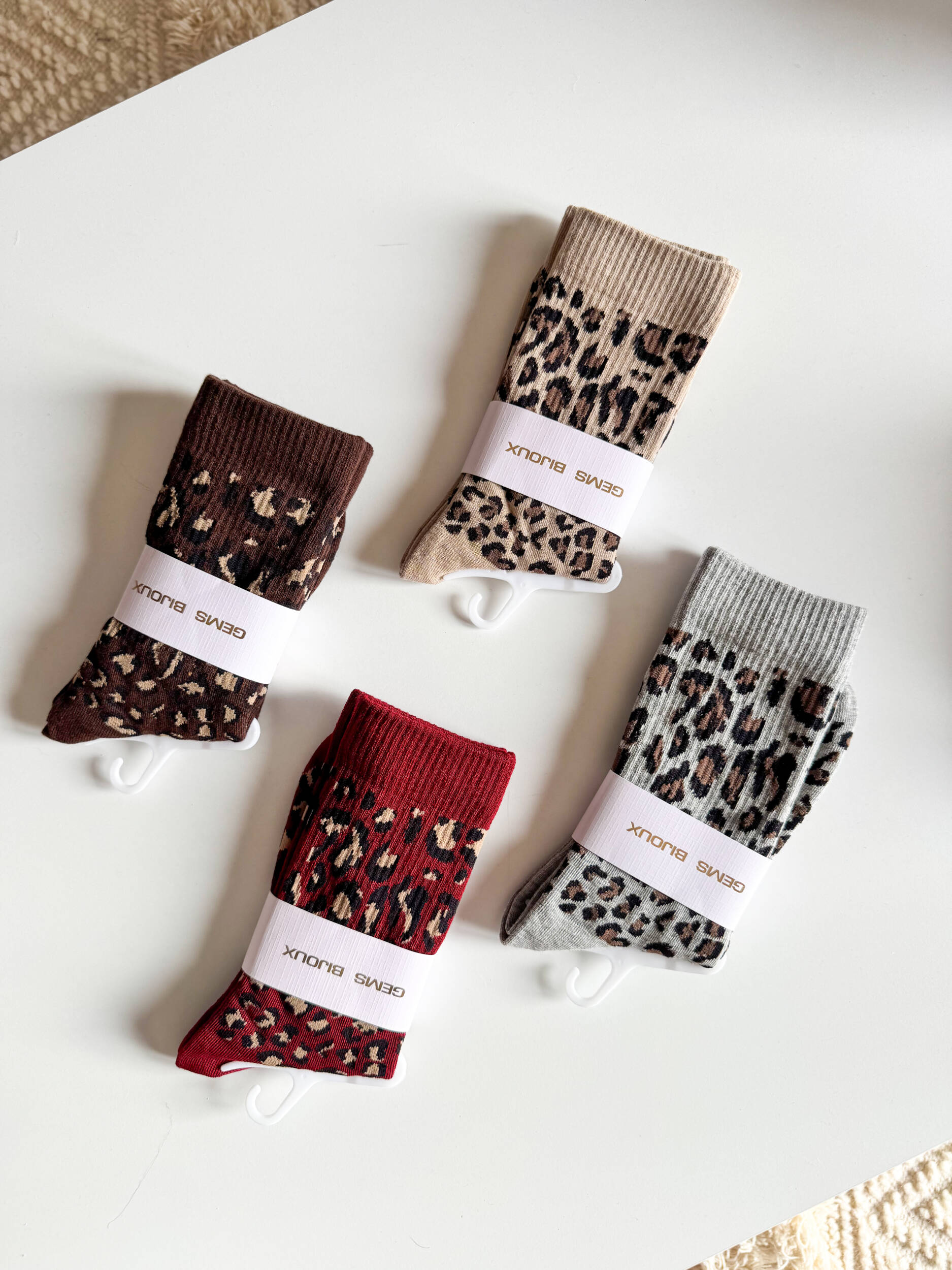 Calzini a coste di cotone in fantasia animalier. Elasticizzati.