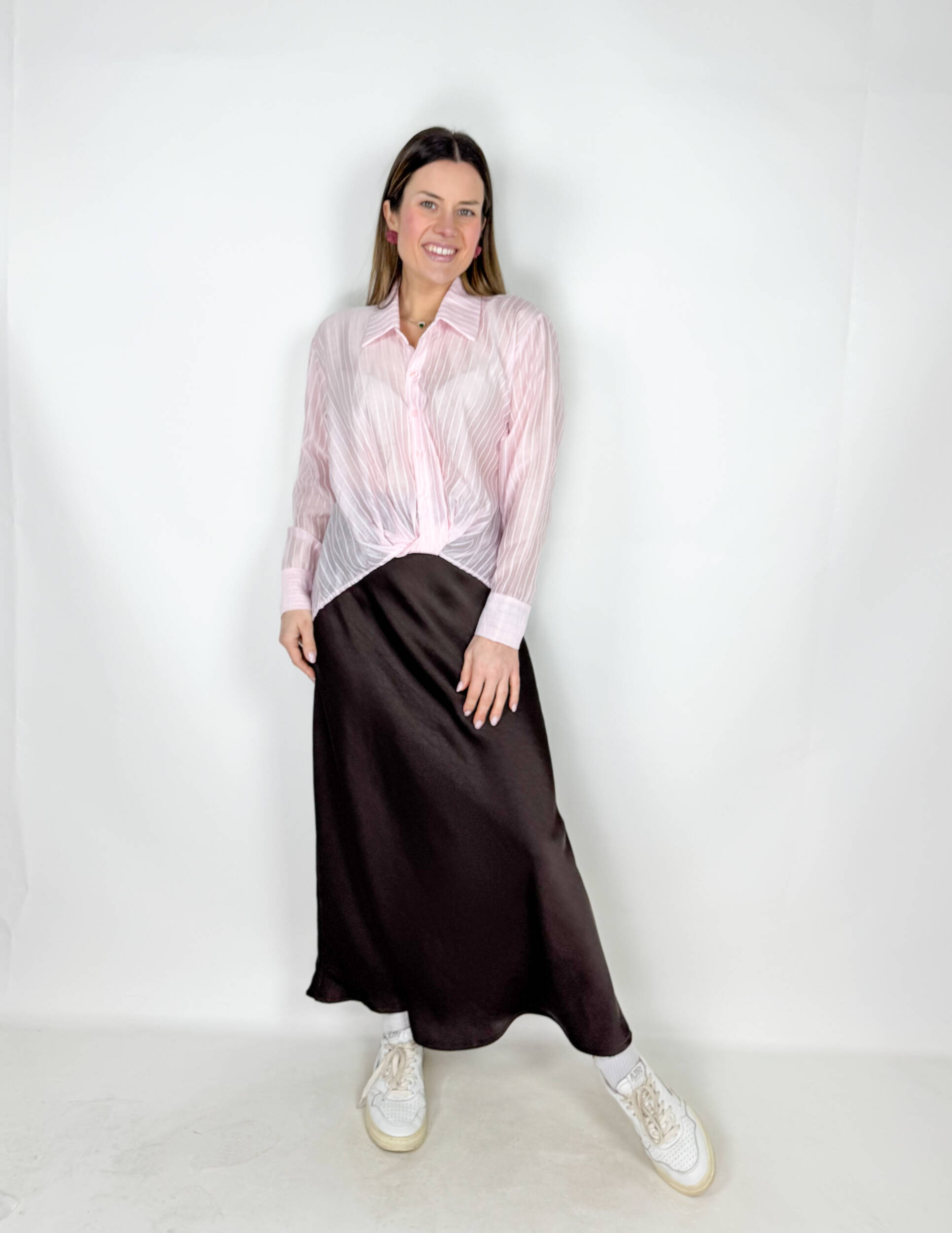 La vestibilità morbida dona un fit rilassato e fluido, il nodo in vita dona un tocco chic. Facile da abbinare a jeans o gonne.