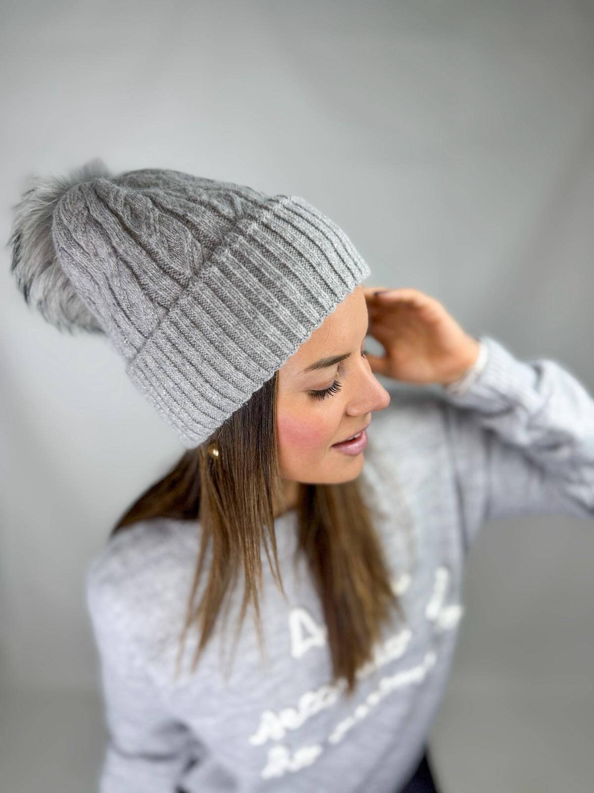 Berretto Elsa caldo in viscosa, lana e cachemire. Con pon pon in pelliccia ecologica.