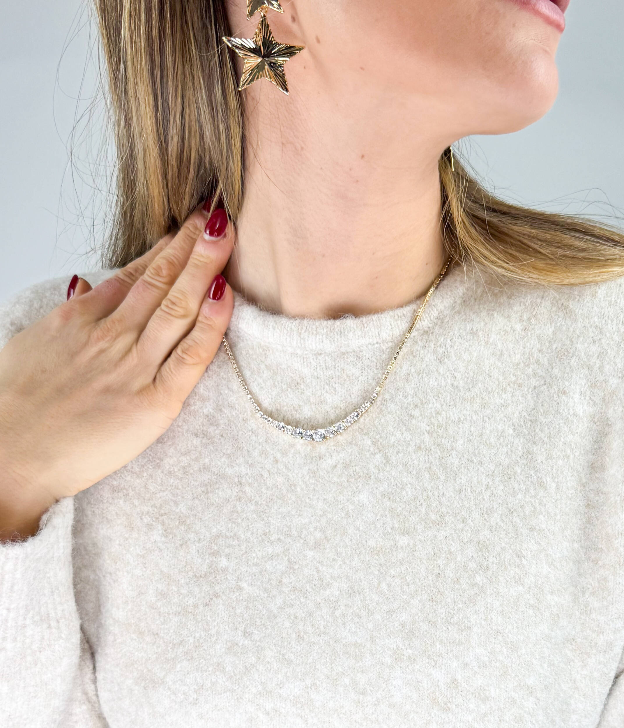 Collier Diamond tipo tennis. Lunghezza della catenina regolabile. Acciaio inossidabile placato, non arrugginisce.