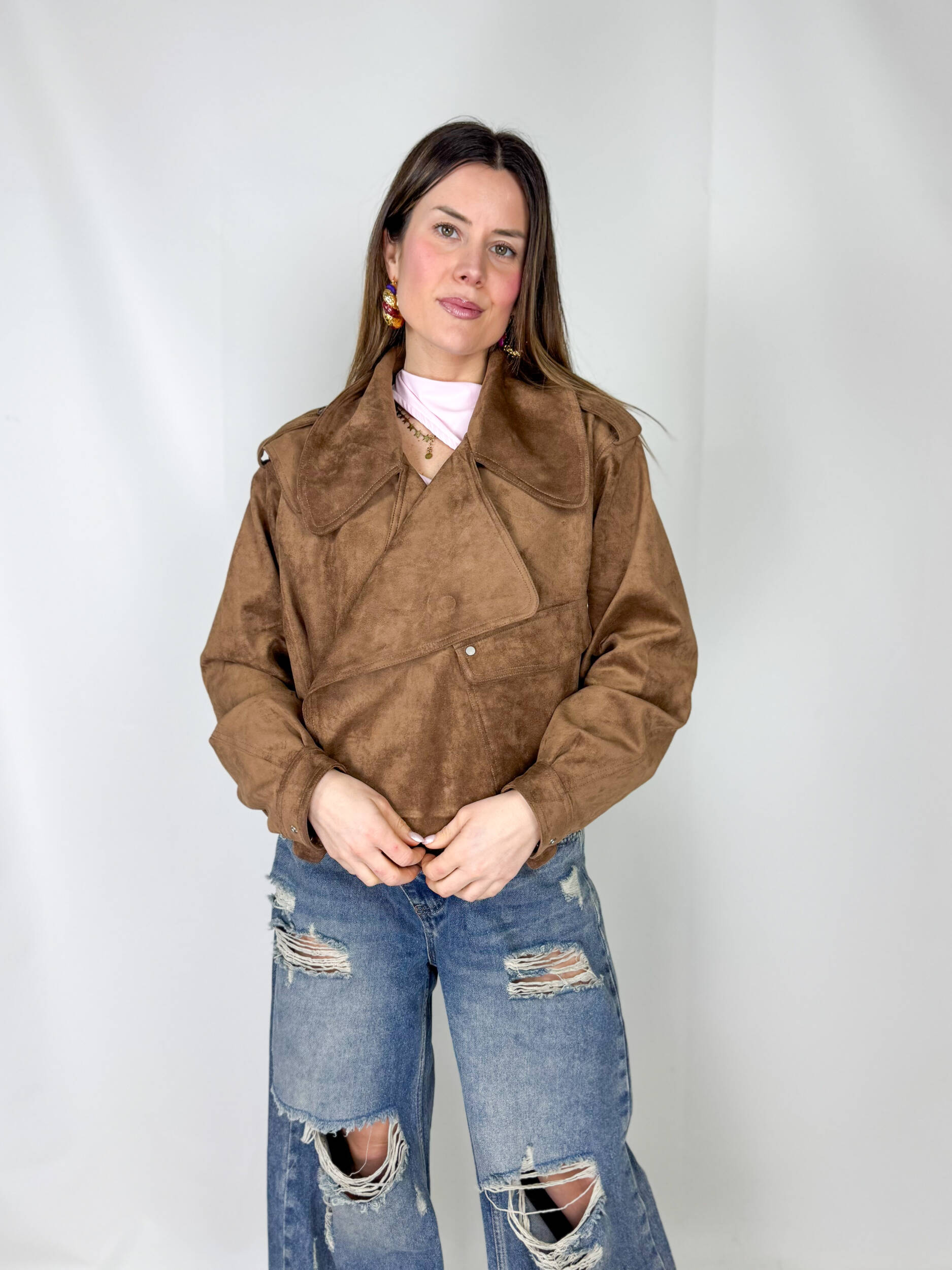 Giacca Brown Elegance marrone dal design scosciato e raffinato, pensata per chi cerca un capo elegante ma con personalità. Il taglio a portafoglio valorizza la figura e crea una linea femminile e sofisticata, perfetta per completare outfit sia casual chic che più eleganti.