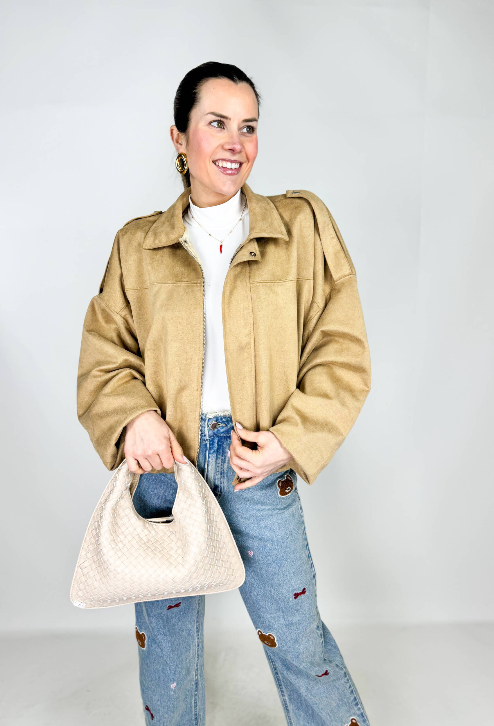 Giacca Urban. Comoda, elegante e dallo stile urbano, questa giacca bomber scamosciata da donna è perfetta per chi ama outfit sofisticati ma casual.