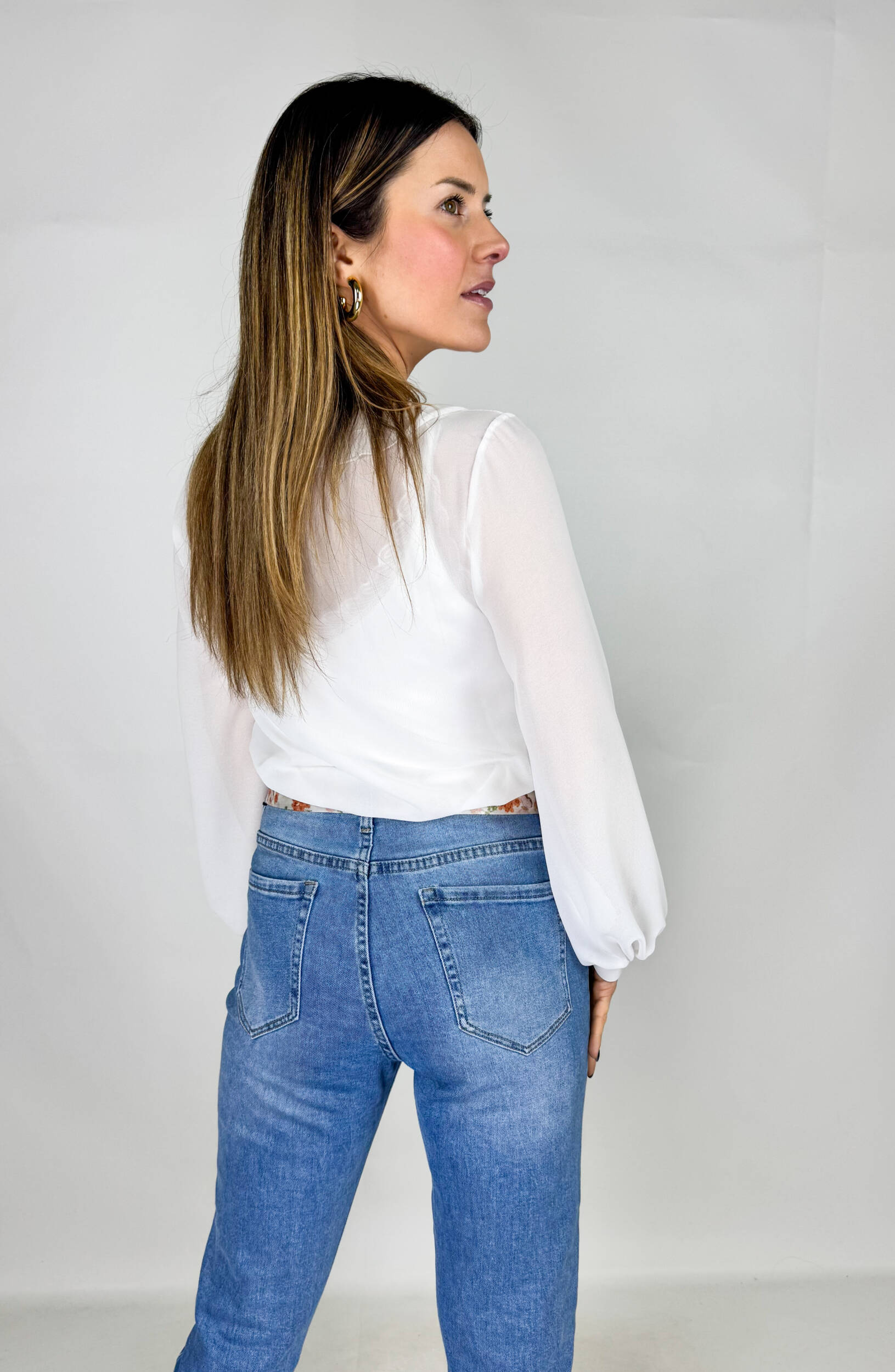 Jeans Vestibilità mum fit in morbido cotone elasticizzato. Molto comodi ed ideali per un uso quotidiano. Vita medio alta. Chiusi con bottone e zip in vita con cintura a bandana regolabile. Morbidi sulla gamba e stretti sulla caviglia.