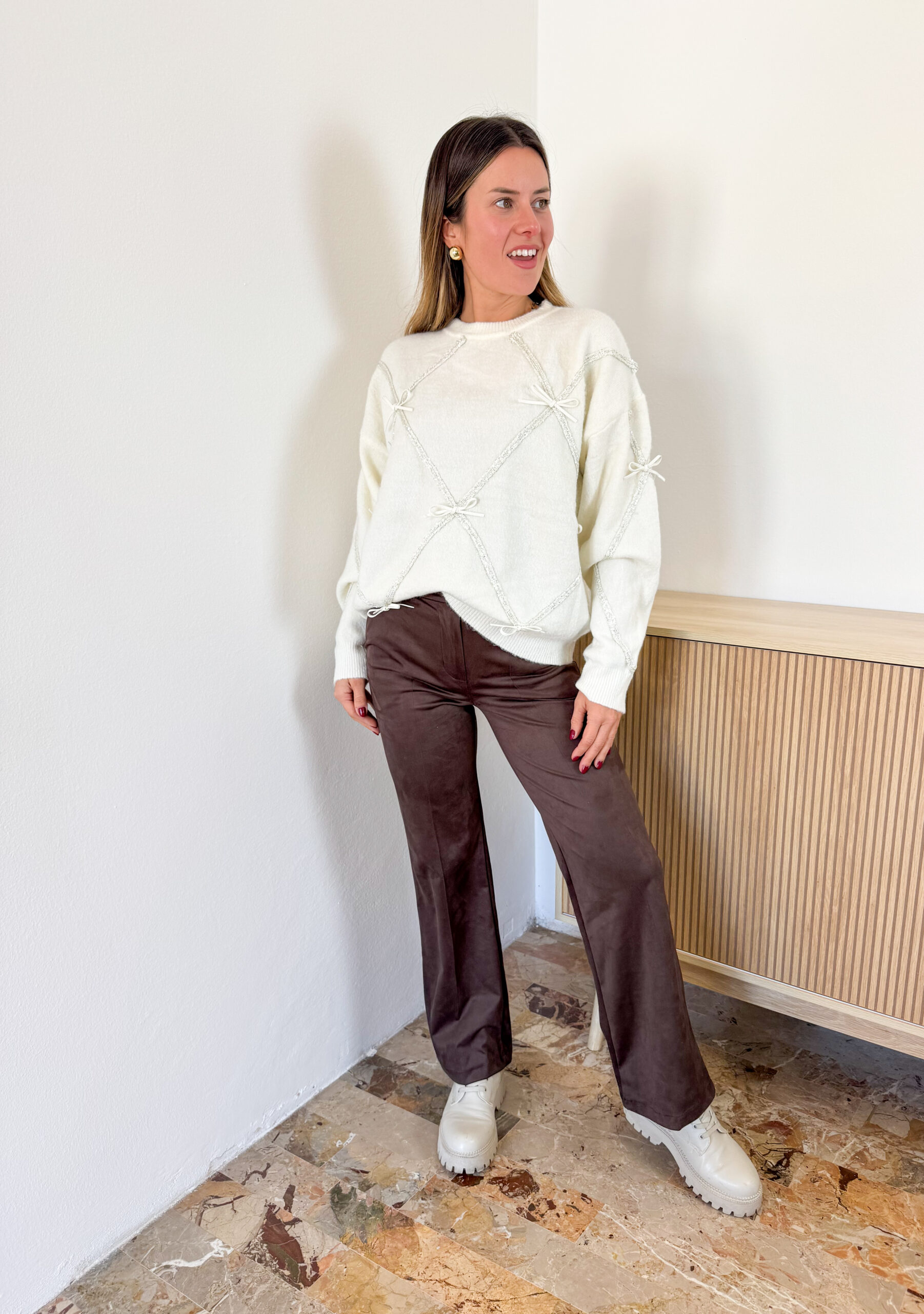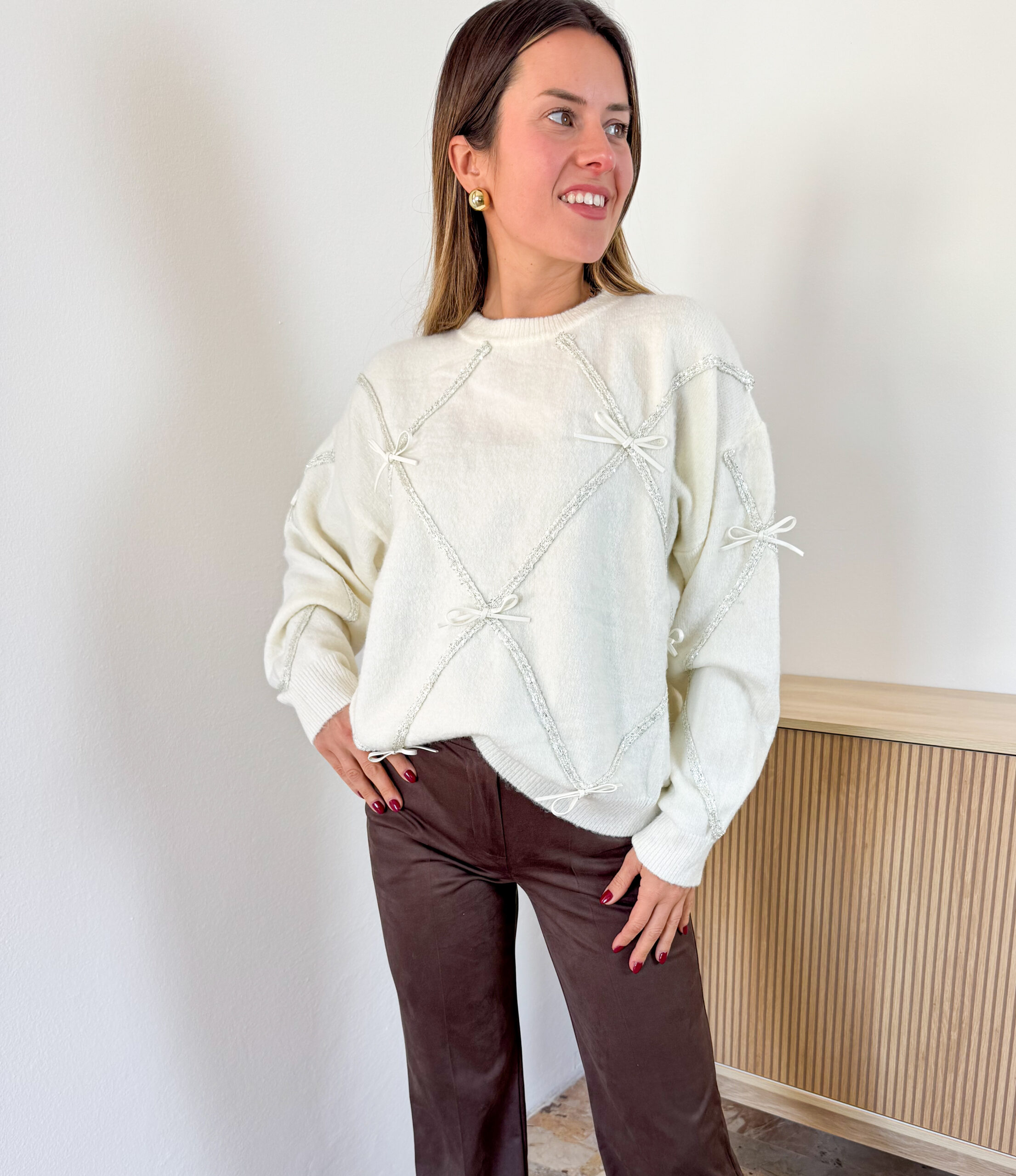 Maglia Aurora Girocollo con lavorazione e fiocchetti sul davanti. Pesantezza invernale.