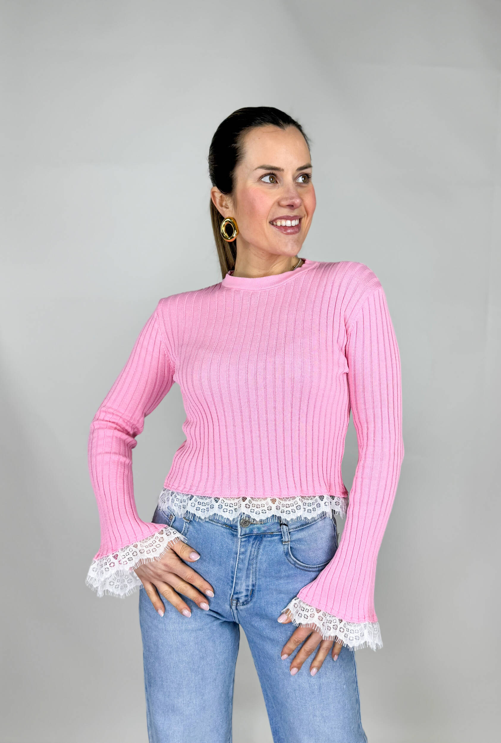 Maglia Lace Belle Crop è la maglia perfetta per chi ama distinguersi con eleganza. Realizzata in morbido tessuto a costine, avvolge delicatamente la silhouette valorizzando le forme con una vestibilità aderente ma confortevole.