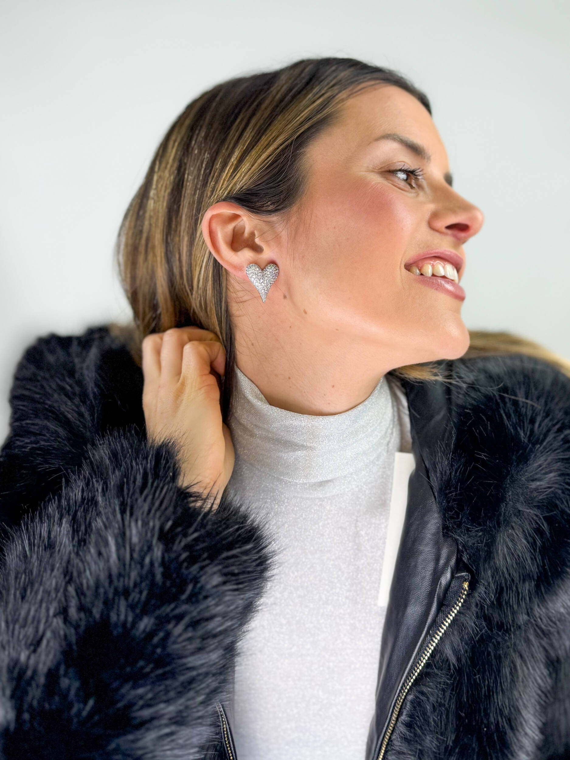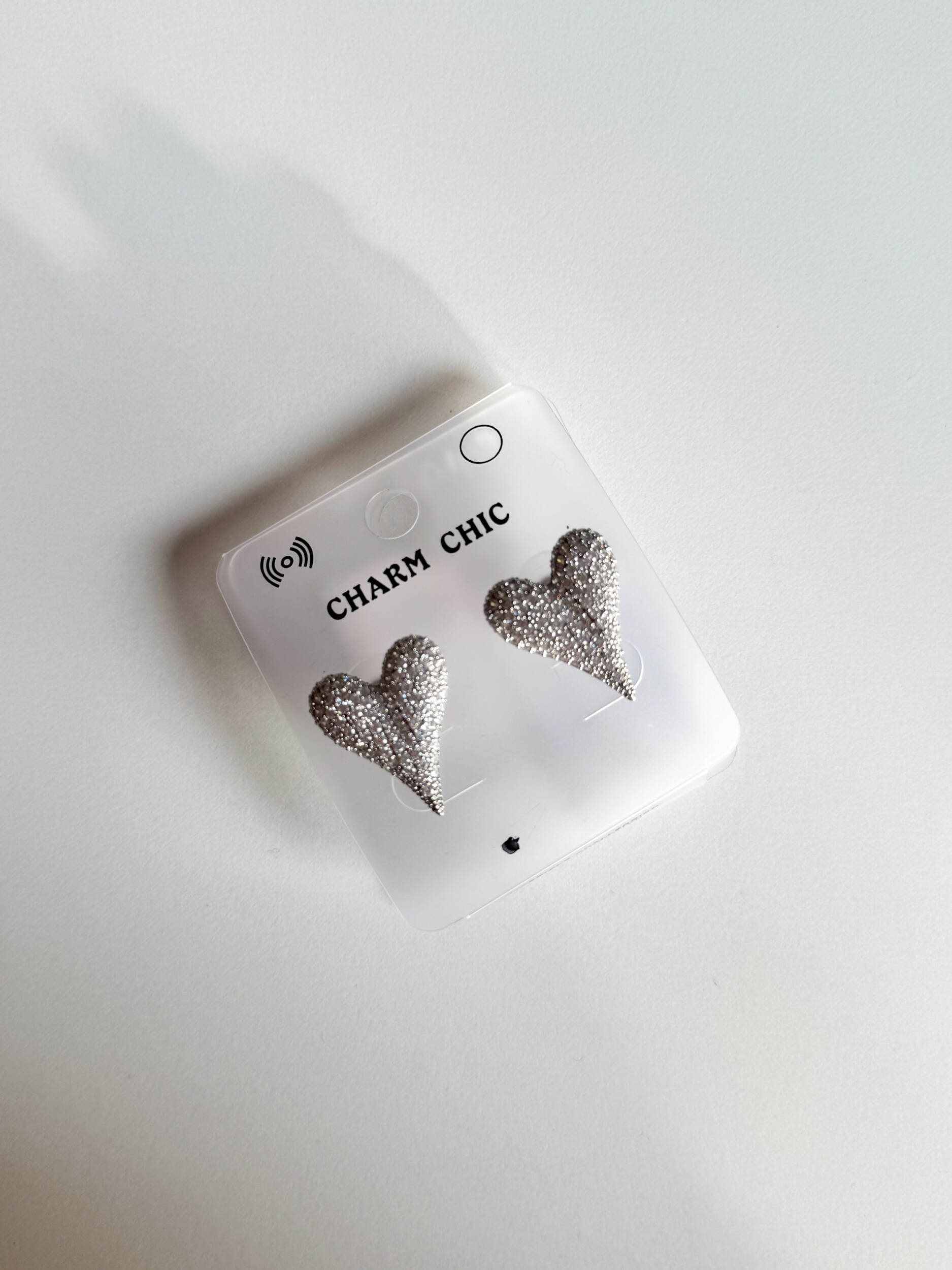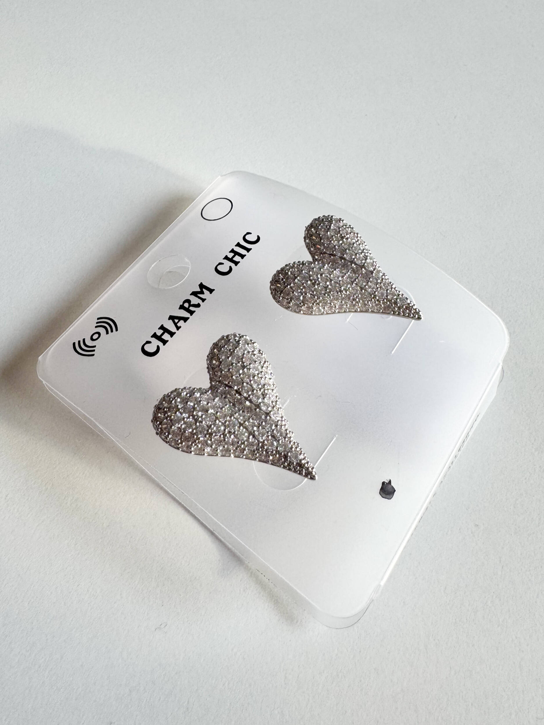 Orecchini Anima a forma di cuore tempestati di swarovski. Luminosi e chic. Chiusura con farfallina.