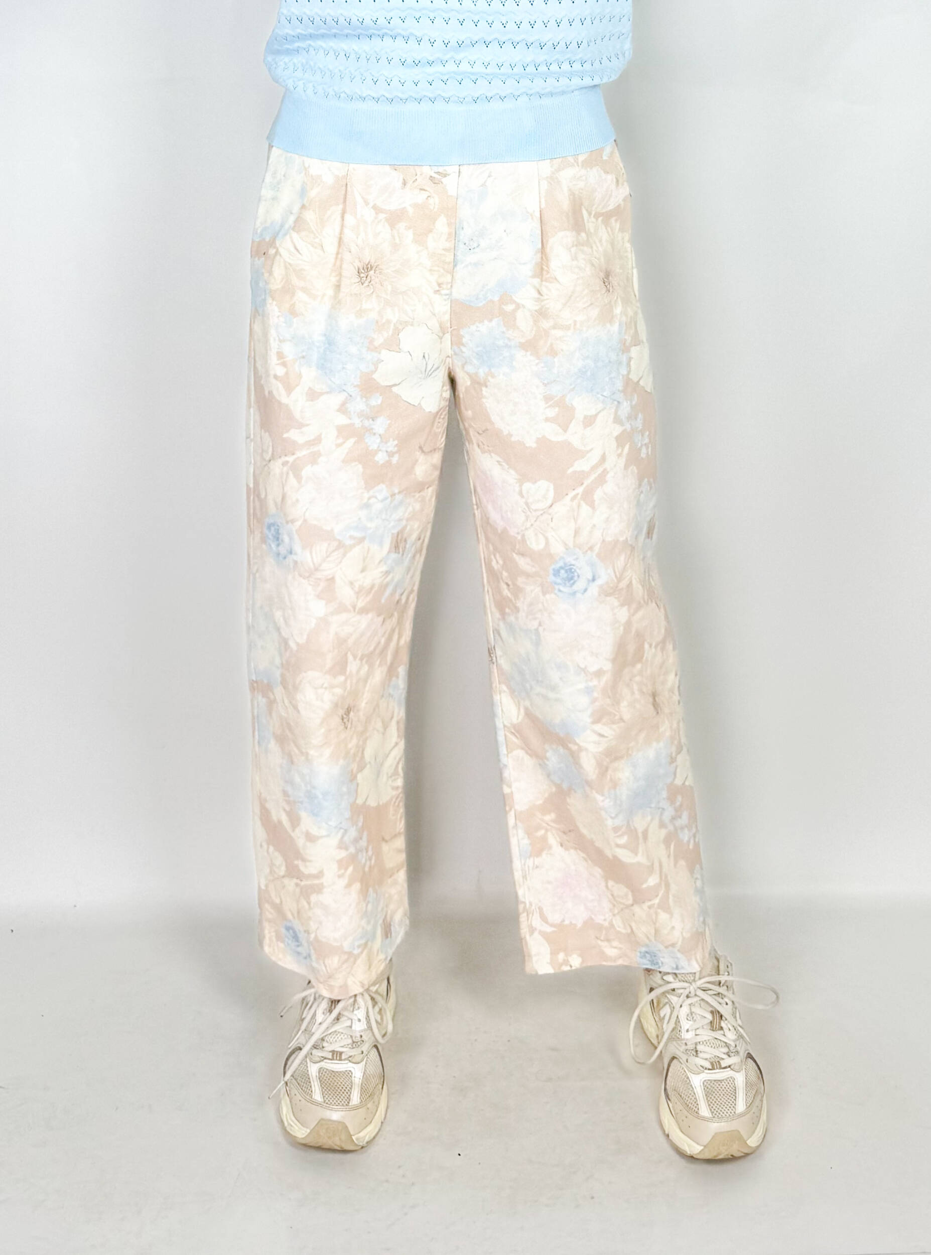 Pantaloni Amour in morbido ed elasticizzato tessuto denim, in fantasia floreale. Modello Ballon con pence in vita. Chiusi con zip e bottone. Ideali per chi cerca qualcosa di diverso senza esagerare.