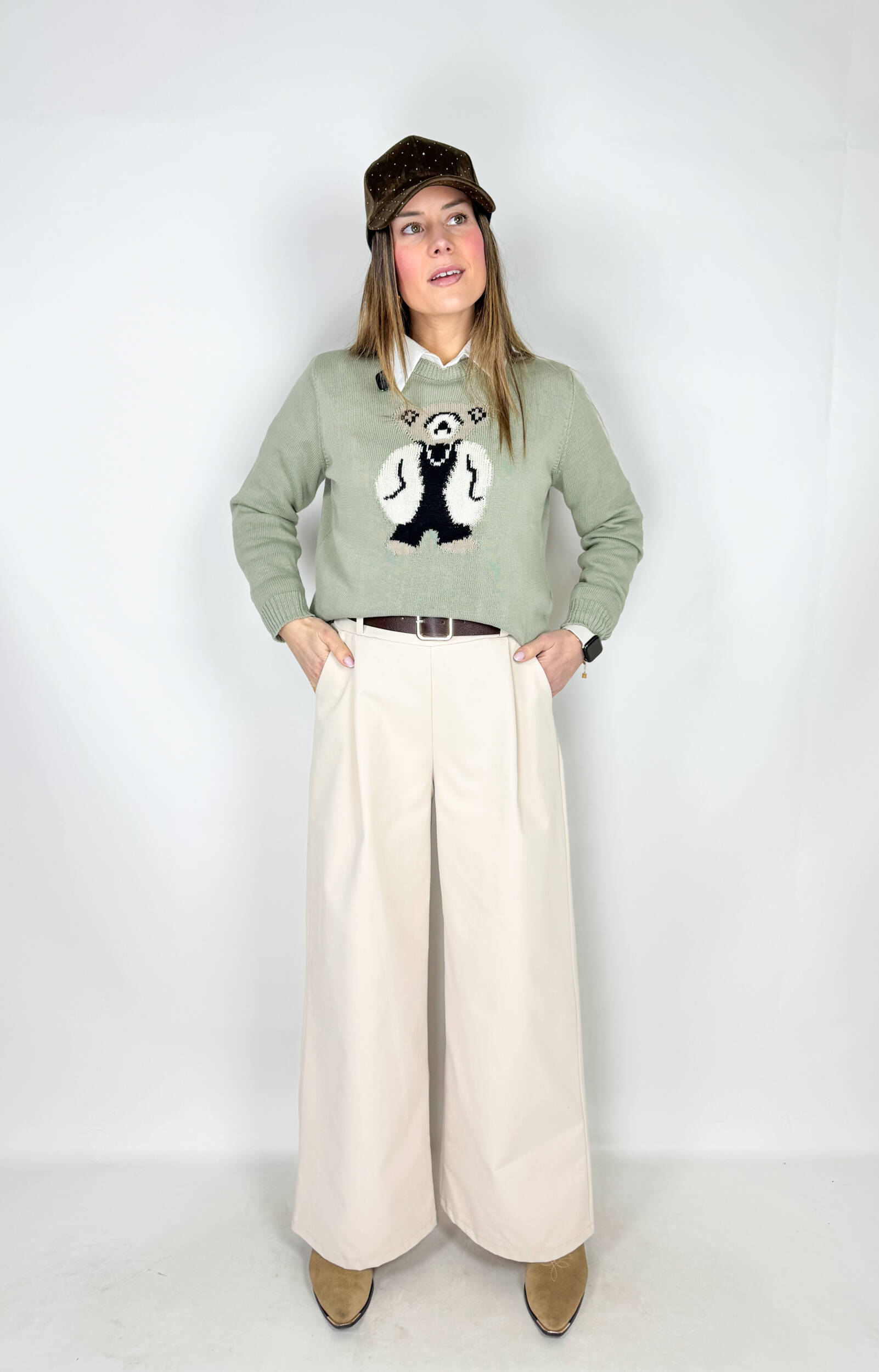 Pantaloni Sand a palazzo beige dal taglio ampio e fluido, pensato per valorizzare ogni silhouette con eleganza e comfort. La linea morbida scivola lungo la gamba creando un effetto slanciato e raffinato, perfetto sia per look casual che più ricercati.