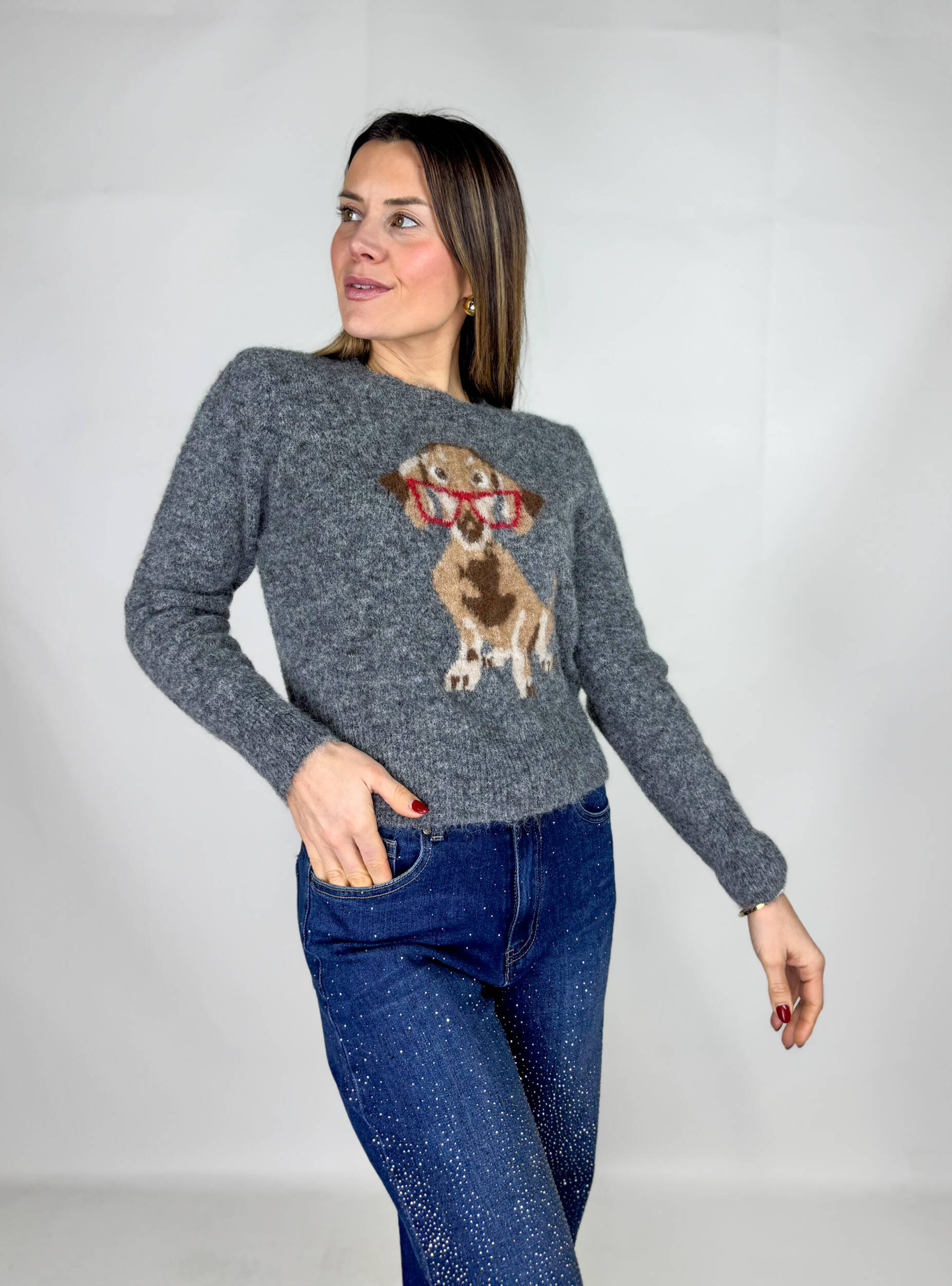 Pullover Cute modello girocollo a manica lunga con grazioso bassotto sul davanti.