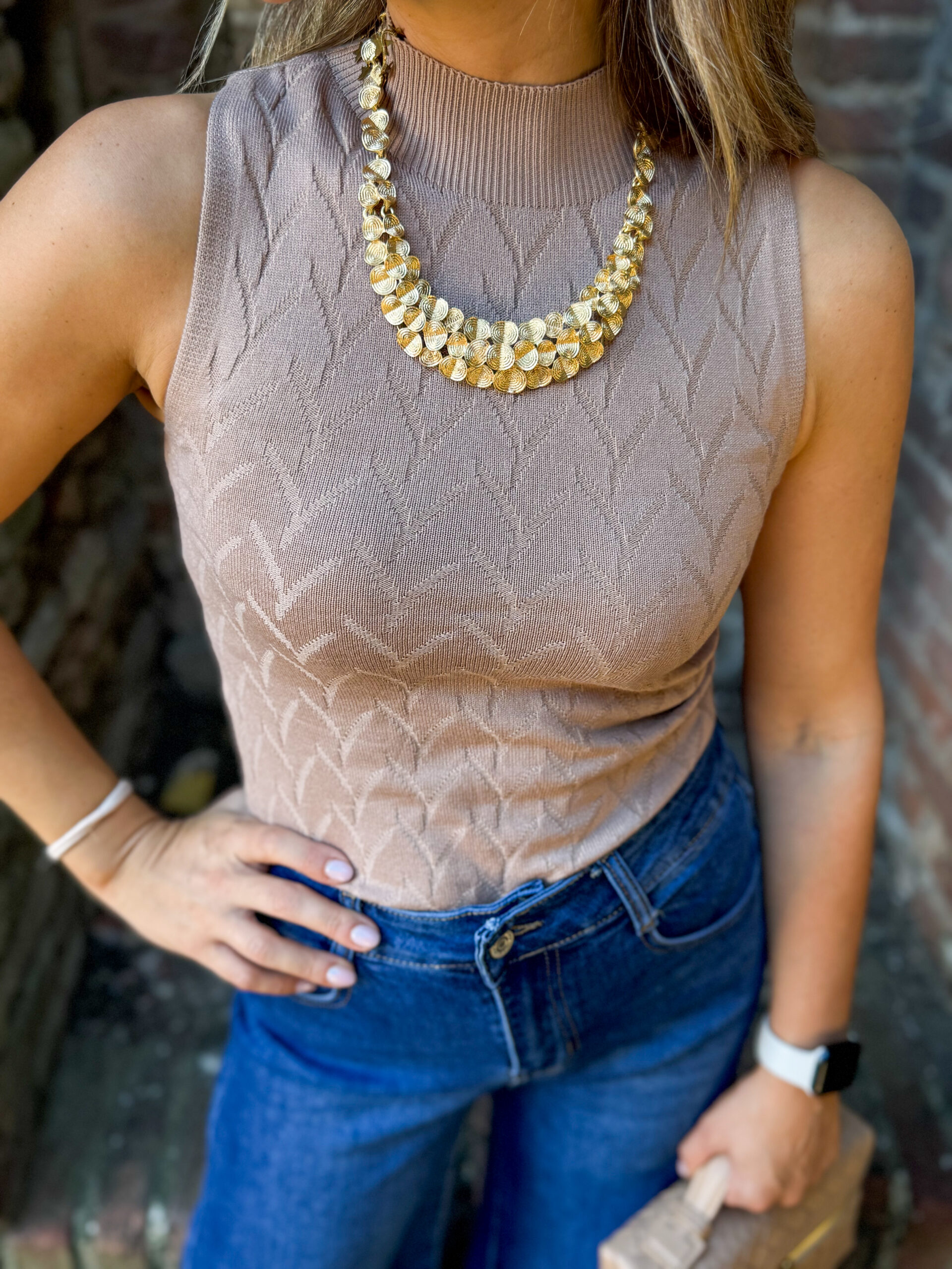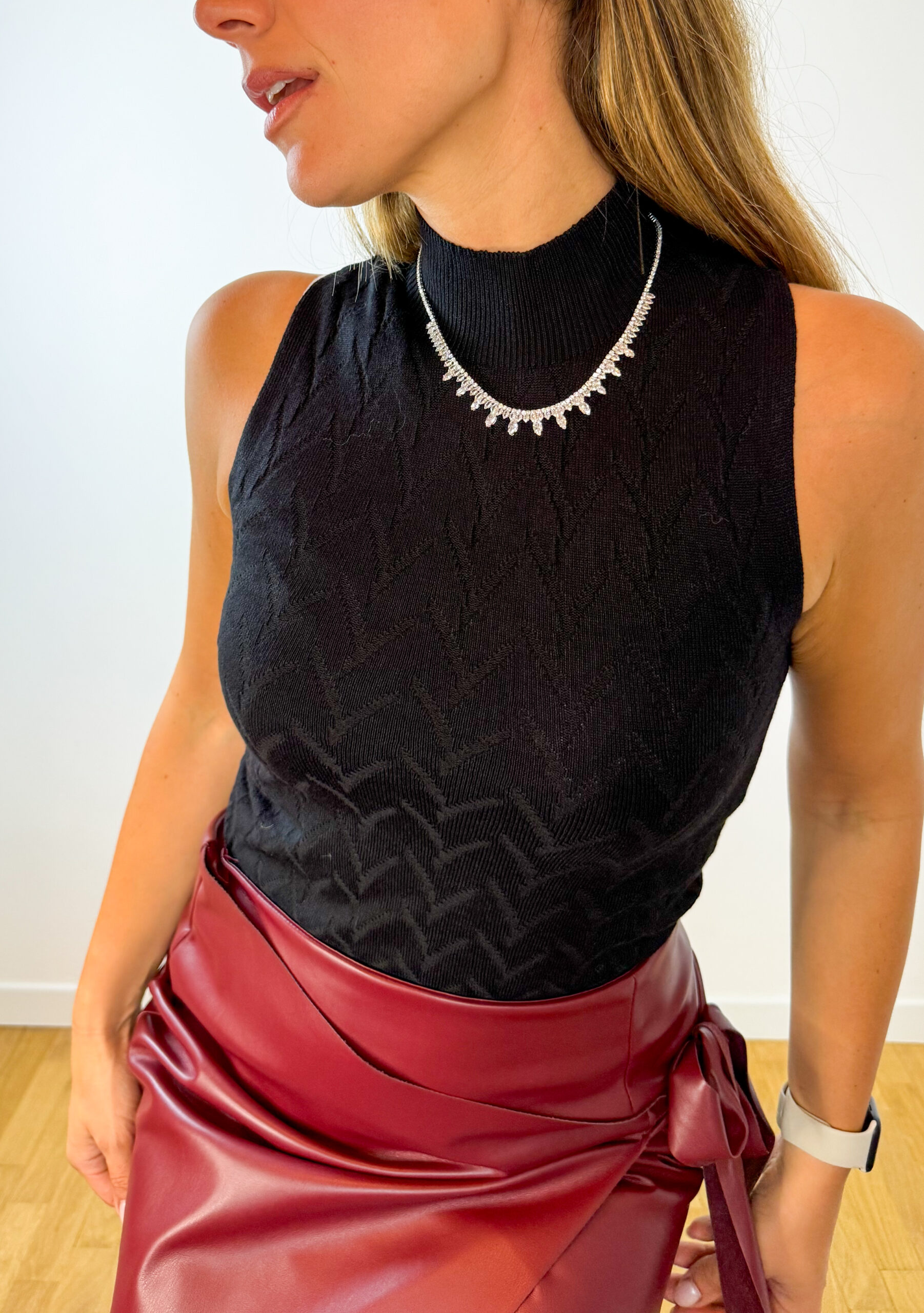 Top Smanicato in viscosa in maglia lavorata, collo a lupetto.