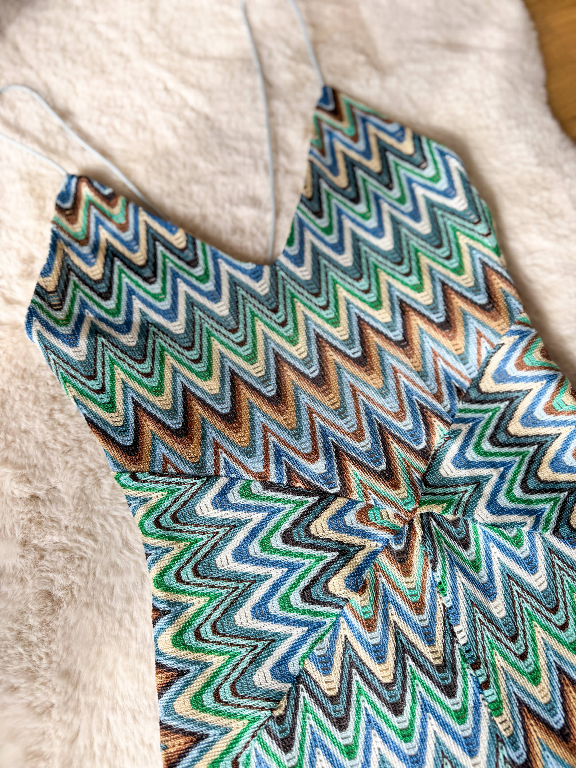 Tuta Marbella elasticizzata multicolore dallo stile vibrante e contemporaneo, ispirata alle iconiche fantasie zig-zag. Il design avvolgente valorizza la silhouette grazie al tessuto stretch che si adatta perfettamente al corpo, garantendo comfort e libertà di movimento.